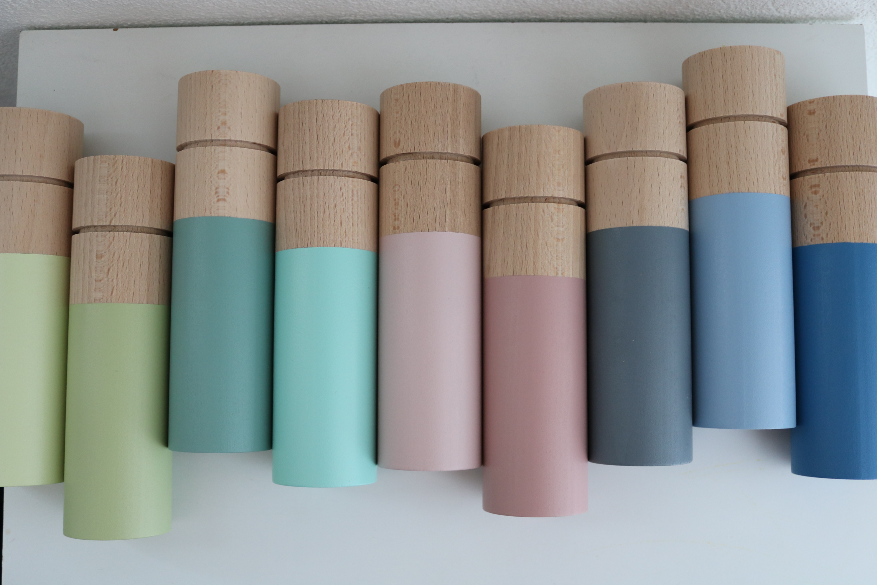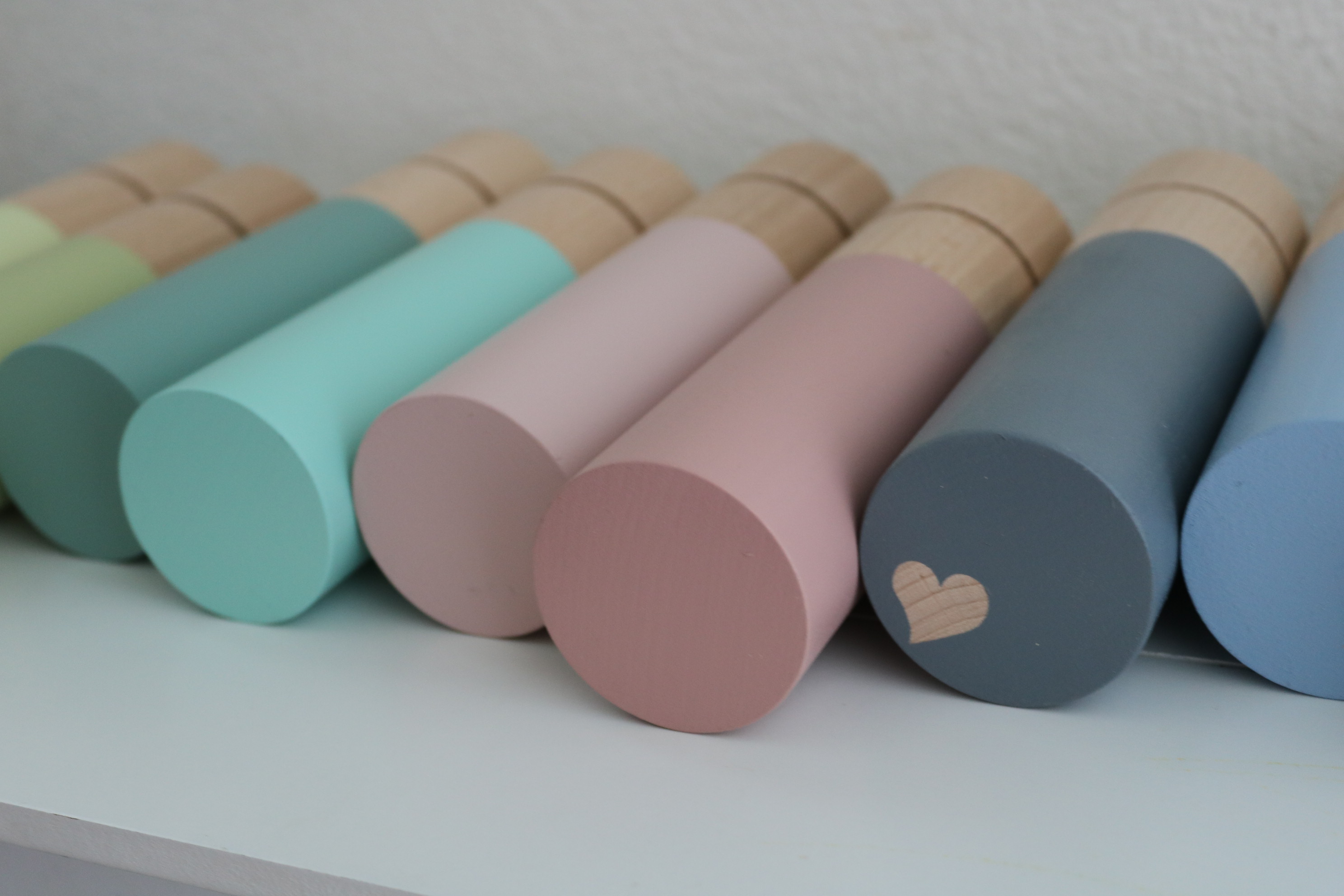 Die Kegel sind alle Einzelanfertigungen. Sie werden von Hand zugeschnitten, geschliffen und gefärbt. Alles Naturprodukte, somit auch geeignet für Kinder!